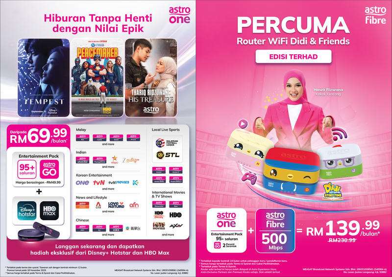 We serve 5.3 million homes or 67% of Malaysian TV households, 8,400 enterprises, 18.2 million weekly listeners on FM and online radio, and 15.6 million visitors to our digital brands every month, including through our Astro Centre in Johor Bahru.